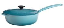 Learn more »Le Creuset L2557-2117 Review: Le Creuset Enameled Cast-Iron 2-1/4-Quart Saucier Pan, Caribbean. This is almost too pretty to cook with. Nothing has ever stuck to it. It is so easy to clean that I love using it and I really love cooking more. The lid is also a great fit. I wish I could get one in every color and size. You won't regret this purchase! Perfect size too: not too small, not too big.2 of 2 . Read more »